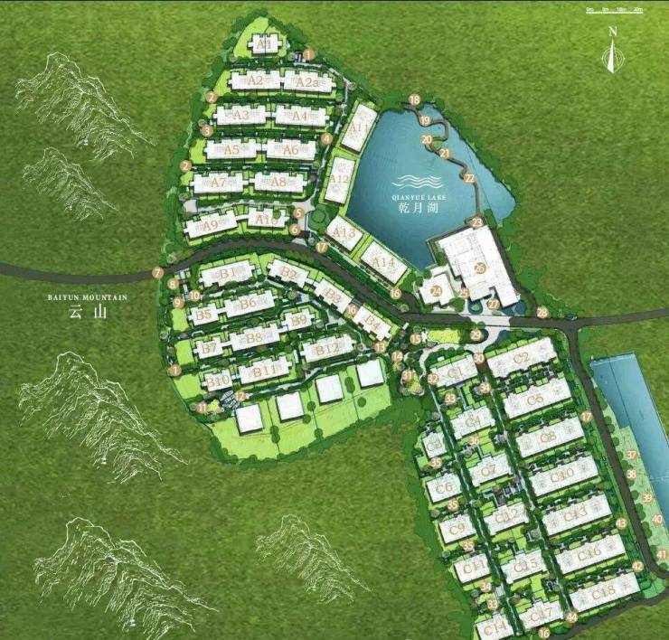【基础信息】项目地址:占地面积:约9.4万㎡建筑面积:约7.3万㎡容积率/绿化率:约0.97/30.7%产品户型:210-215㎡平墅,206-241㎡叠墅,266-306㎡联排别墅整体规划:产品业态以联排别墅为主,共规划269户。分为ABC三个住宅组团分期开发,其中A区为41套联排别墅和15套临湖别墅,B区为37套联排别墅,C区以叠墅为主少量平墅产品,共规划269户。