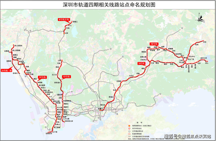 深圳市轨道四期相关线路站名规划图