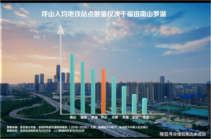 根据深圳市轨道交通线网规划(2016-2030),到2030年,全面进入地铁时代的坪山,人均站点数量仅此于福田南山罗湖。