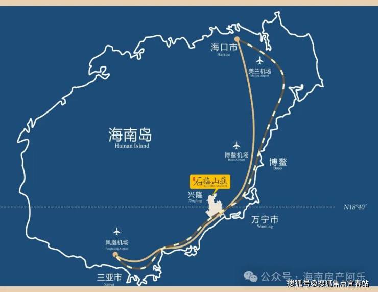 3大机场:海口美兰机场(约140公里) 、三亚凤凰机场(约98公里) ,琼海博鳌机场(约54公里)