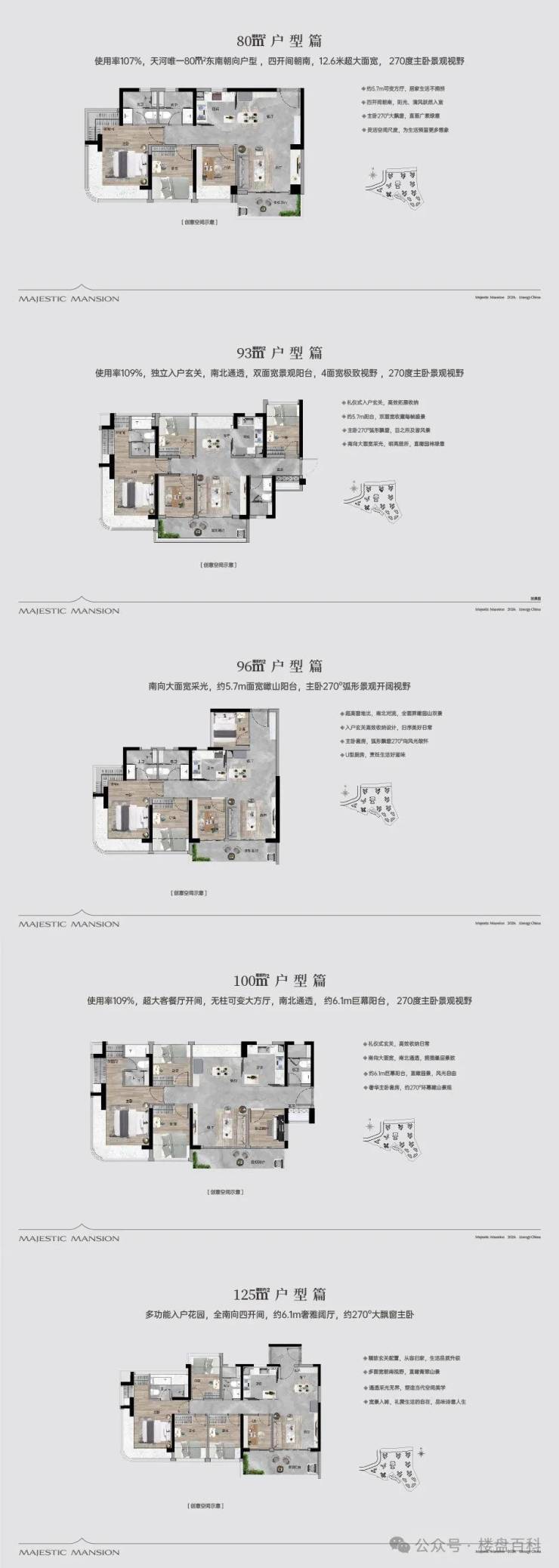 建面约80-125㎡可生长空间、270°全南向瞰山奢居、超100%高空间使用率。