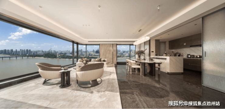在内环滨江,项目以约2.98的容积率、22-28层舒适层高,于繁华中营造静谧绿洲。建筑以鎏金玻璃幕墙立面,以极简美学勾勒城市封面,引江景入室,无界融合。