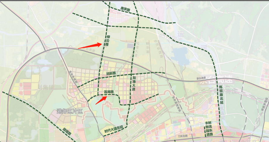 在道路方面,淮海国际港务区也有大动作。1月28日,港务区的两大重点道路——莲湖路及柳沿路启动了勘察设计招标。