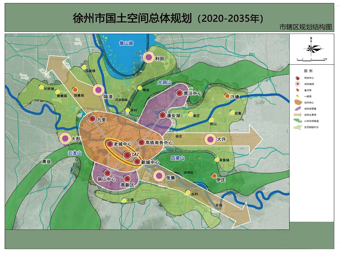 能够看出来,淮海国际陆港是徐州发展的重中之重。在徐州十四五规划中,提出要建陆港新城,并提到行政中心设在柳新,同时,陆港新城也被列入了徐州2035年国土空间规划,成为五大城市组团之一。