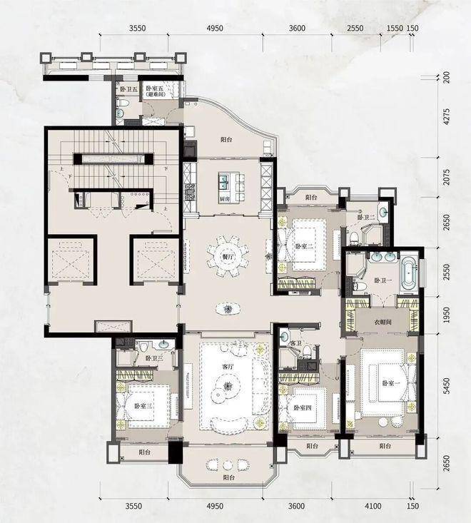 厅房均配阳台与大面积落地窗,全屋江景观赏幅面超15米;