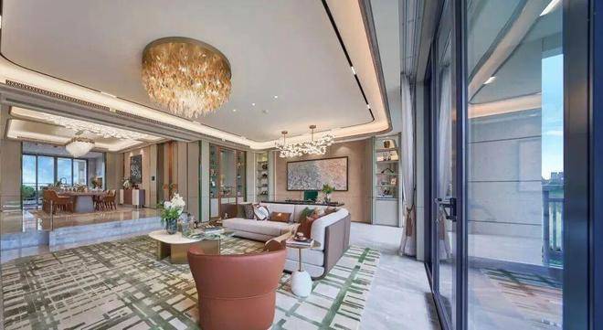 个性定制灵活双厅打通拥有约9米宽的江景,双客厅面积可达约50㎡;