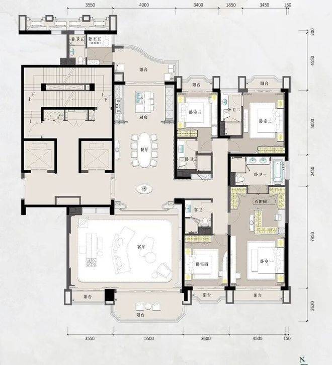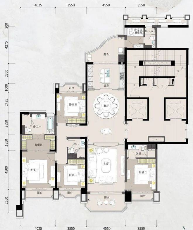 半岛五號规划以南北两排沿江岸线走向排布势如九星捧月,间距最宽可达约173米外有珠水都市之景,内藏恢宏园林之美当是臻稀难得的绝版一线临江奢雅大平层