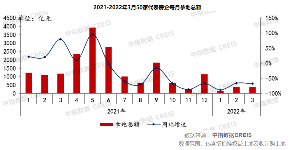 克而瑞研究中心统计,一季度百强房企中近七成企业依旧未拿地。中指研究院的数据显示,1-3月,TOP100房企拿地总额2271.6亿元,拿地规模同比下降59.3%;3月,50家代表房企拿地总额同比下降68.0%。