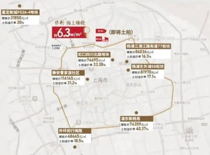 5月14日上海市土地交易市场发布宝山区W12-1301单元90-01、91-01、92-01、93-01、94-01、87-01地块挂牌,地块起拍价81亿,起拍价对应的可售商品住宅整盘微利售价6.3万/㎡,若以当前市场 30%溢价率来算,对应的可售商品住宅整盘微利售价将直冲7.9万以上/㎡,中环旁大四房总价更是轻松破千万!