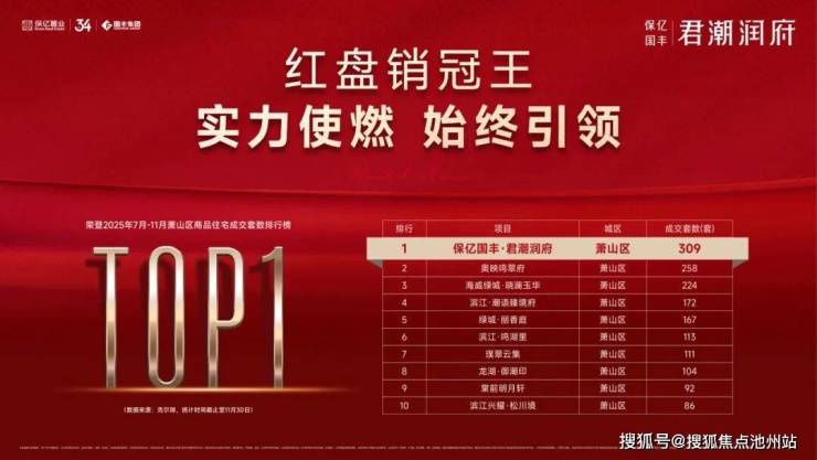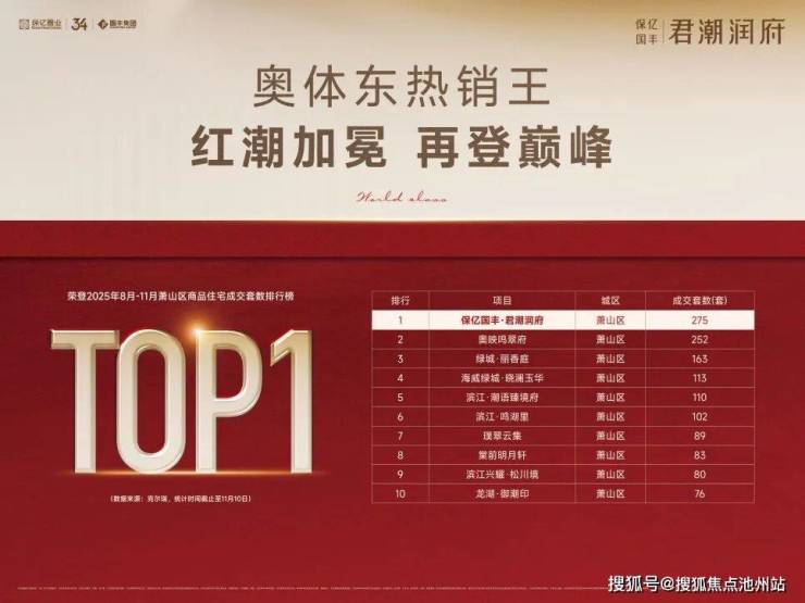 当市场寒意让多数人选择观望时,保亿国丰·君潮润府却持续霸榜7-11月萧山区商品住宅成交套数排行榜TOP1(数据来源于克尔瑞),这份“硬核业绩”佐证了市场对“好房子”的渴望从未消散。
