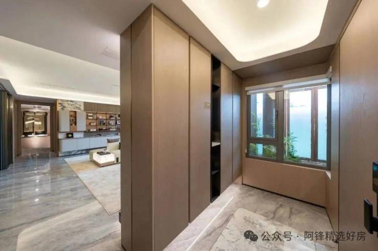 入门,首先看到的是一个阳光独立玄关系统,自带开窗面,能引入自然光和清风,减少室内受潮、阴暗。