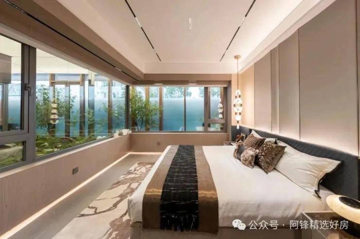 最后,是270°无边界主卧,飘窗全部纳入可使用面积,直接上图,放下大床还能三边下床: