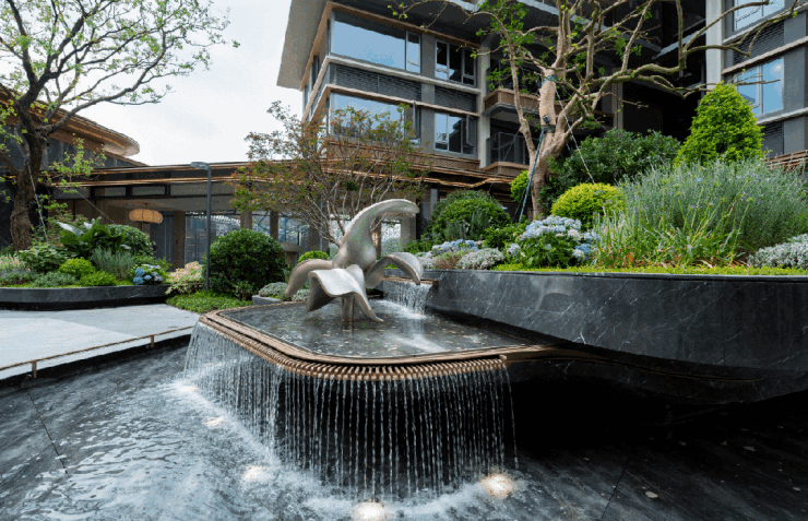 园林也融入“老钱风”风格,六进归家,九园围庭,增加了厚重感和享受性。