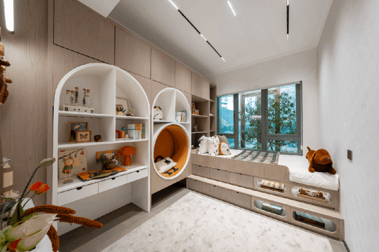 绝妙的是,越秀另外预留了两处空间打造衣柜,不需要占用无边界飘窗位置。