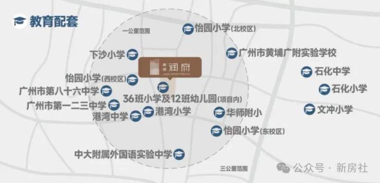 黄埔润府除了社区配建36班小学及12班幼儿园,实现目送式步行上学之外,周边还聚焦了片区多所优质学校,怡园小学、下沙小学、港湾小学,以及广大附中黄埔实验学校、广州市八十六中学等。