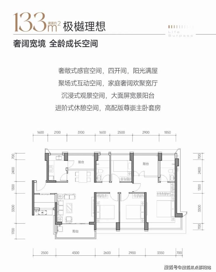 133㎡的5房2厅2卫户型,折后总价907-963万/套,单价6.87-7.18万/㎡。