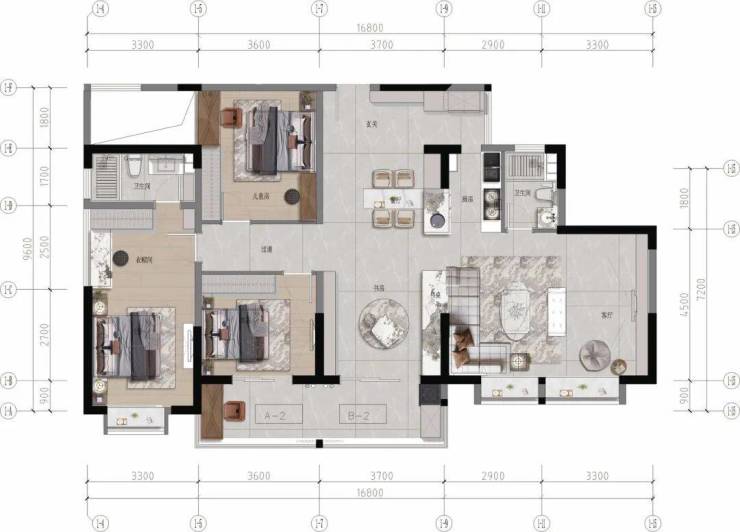 【A-2+B-2 大平层 建面约142㎡】