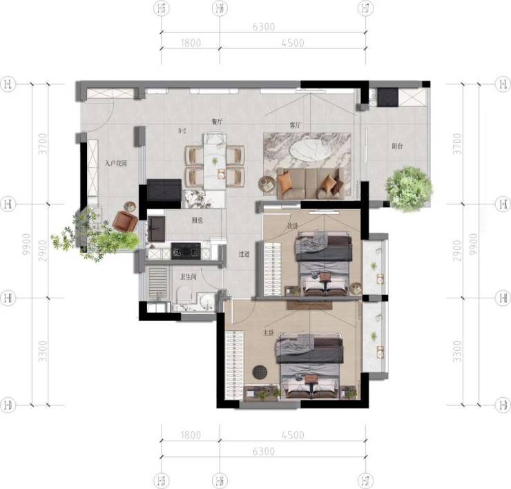 ◎宜居范本:独立入户花园,方正两房筑就宜居典范