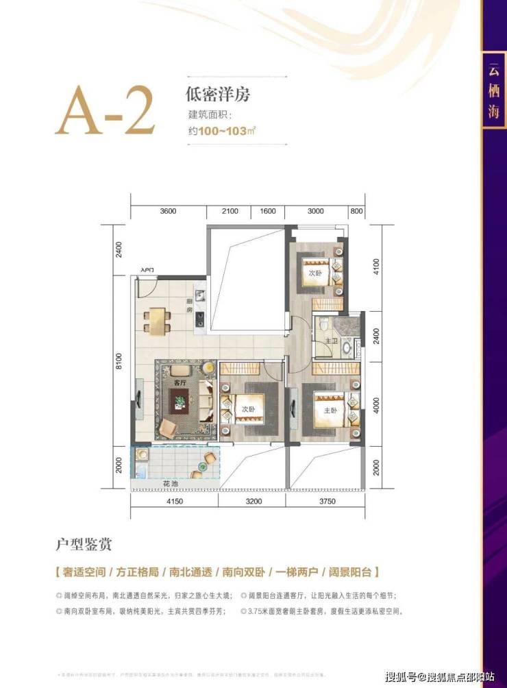 一梯两户,南北通透,阳光清风入户无拘束;双卧室朝南设计,4.2米面宽客厅连接阔景阳台,三面阳光环绕,生活乐趣自由延伸。