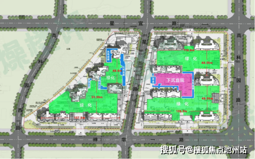 整个大地块又由星高路与兴宜街分割为A、B、C、D四个小地块,其中A、B地块为商办,C、D地块为住宅,总占地面积共计79747.09㎡。