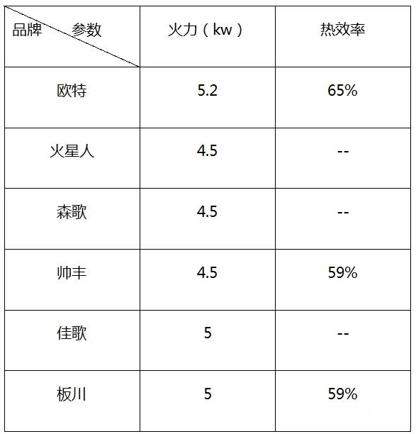 中国菜享誉世界,其中大部分菜品都离不开爆炒,在这过程中,灶具的性能几乎起到决定性作用。在集成灶的灶具方面,我们一般考量两个标准:灶具火力与热效率。火力决定着爆炒的程度,而热效率是衡量灶具燃烧效率的重要标准。国家标准中,燃气灶具的一级能效的标准为59%,我们同样来对比一下上面提到的那些产品的灶具参数。