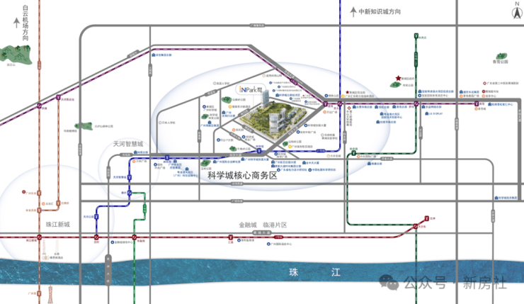 项目依托开创大道、科学大道两大城市主动脉,迅捷通达广州各区;更拥地铁21号线科学城站(约500米)、6号线暹岗站(约800米)双地铁,快速链接广州各区。项目依托开创大道、科学大道两大城市主轴,快速连接科珠路、广深路、二环高速等,约30分钟畅达广州各区,1小时内通达广佛深等城市,打造商务高效剧场;