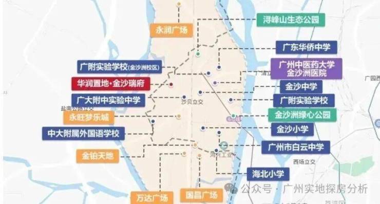 金沙中学并入广附教育集团,引入广州白云广附实验学校先进的办学理念。周边还有华南师范附小、广州华侨中学金沙校区、金沙中学、广附实验学校等学府环绕。