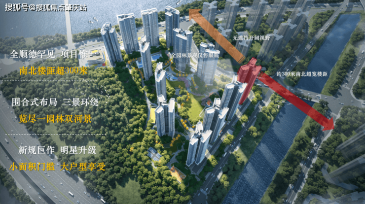 依托环境匠心独造,实现IMAX270°全景规划,户户无遮挡,席席强采光。全顺德罕见约260米南北楼间距,创新延展楼型南北通透。