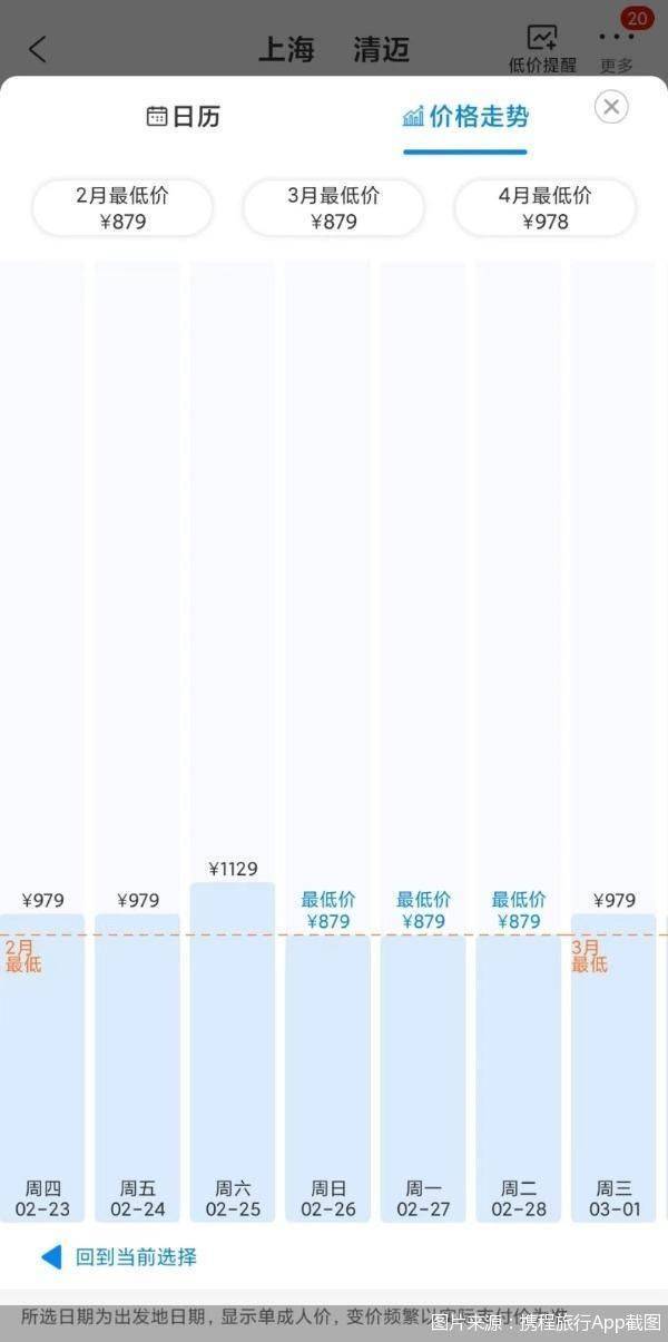 随着赴泰航班的不断加密、机票价格“大跳水”,泰国旅游市场将迎来快速恢复。据携程此前发布的数据,2月上海直飞往返普吉岛出现1600元、南京直飞往返普吉岛出现2000元的价格。北京商报记者查询携程旅行平台发现,上海飞往清迈的机票价格出现了低于千元的情况,2月最低价为879元。