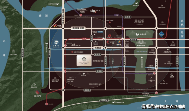 山水·云溪里由山水城发集团、蓝城联袂共筑,位于滨湖区和风路与万顺道交叉口西南侧,处于滨湖区和经开区双核交汇之处,依托“太湖湾科创带山水科创之核”,执掌城市发展脉络,周边海岸城、大悦城、江南大学附属医院、第二中医院等城市核芯配套环伺,蠡湖大道、贡湖大道、高浪路快速路、吴都路串联起城市交通脉络。
