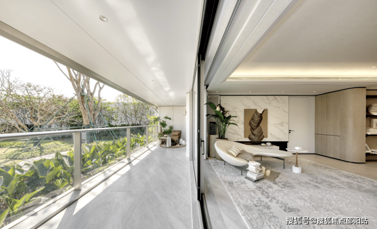 比如建面约342㎡户型,悬挑2.4米L型跑道式阳台,阔绰尺度,挑战极限。