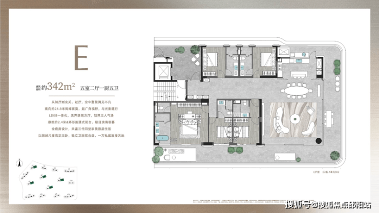 项目建面约342㎡的五套间都市大平层。
