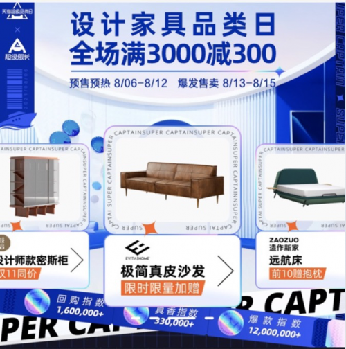 天猫超级品类日设计家具专场活动,不仅指明了当下原创设计家具消费市场的三大趋势,更为广大年轻消费者专门集结了“ziihome/致家家居”、“吱音”、“造作ZAOZUO”、“evitahome”等对应趋势领军品类舰长品牌驻场带货。