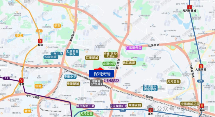 项目附近有3条地铁线,3号线,11号线和21号线,距离最近的站点棠东站直线超过2公里,对于业主来说,几乎享受不了地铁的便利。