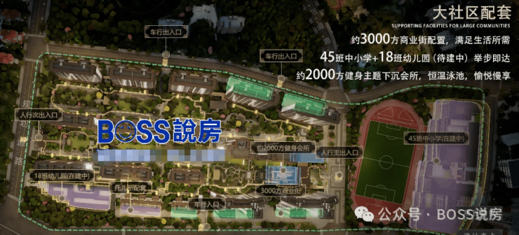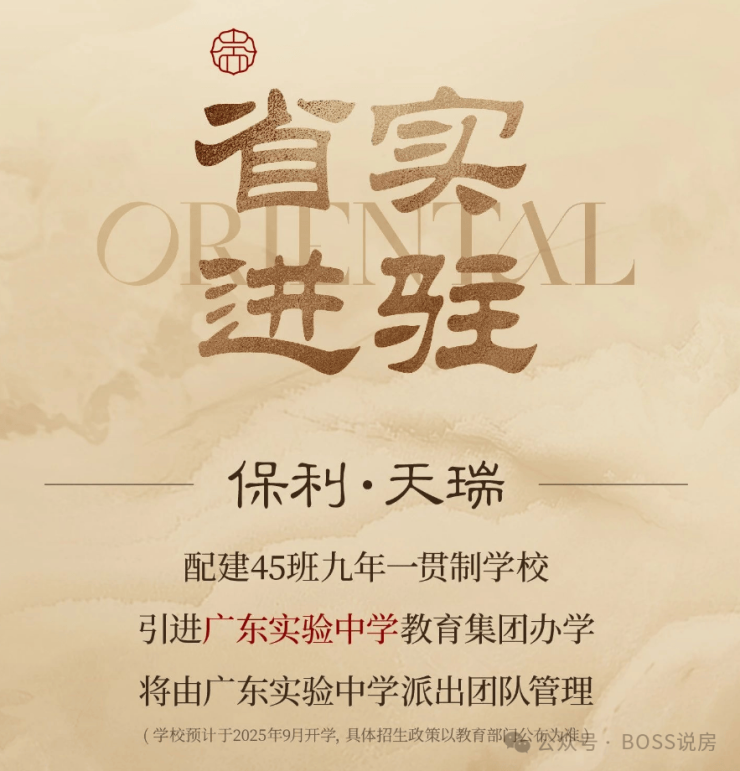 项目配建一所18班幼儿园,以及45班九年一贯制学校,目前该校已官宣引入广东实验中学教育集团办学,由广东实验中学派出团队管理。