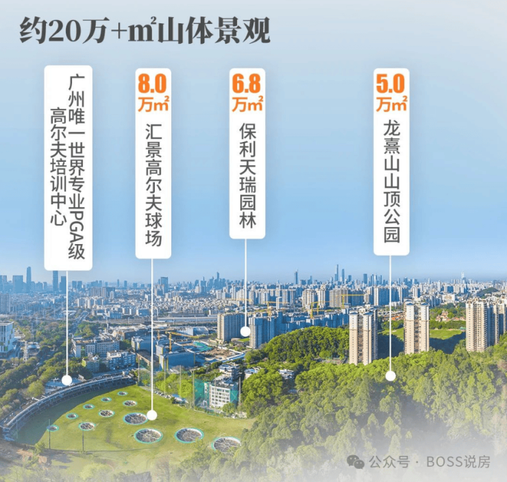 北侧就是5万m²龙熹山山顶公园,背靠约8万㎡专业级汇景高尔夫球场,还有自身配建的6.8万m²园林,满满的负离子;