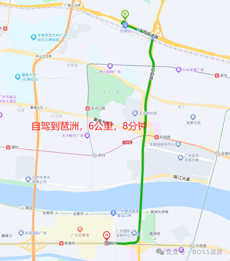 下面测评到珠江新城,金融城和琶洲的自驾时间,看看究竟有多方便吧!
