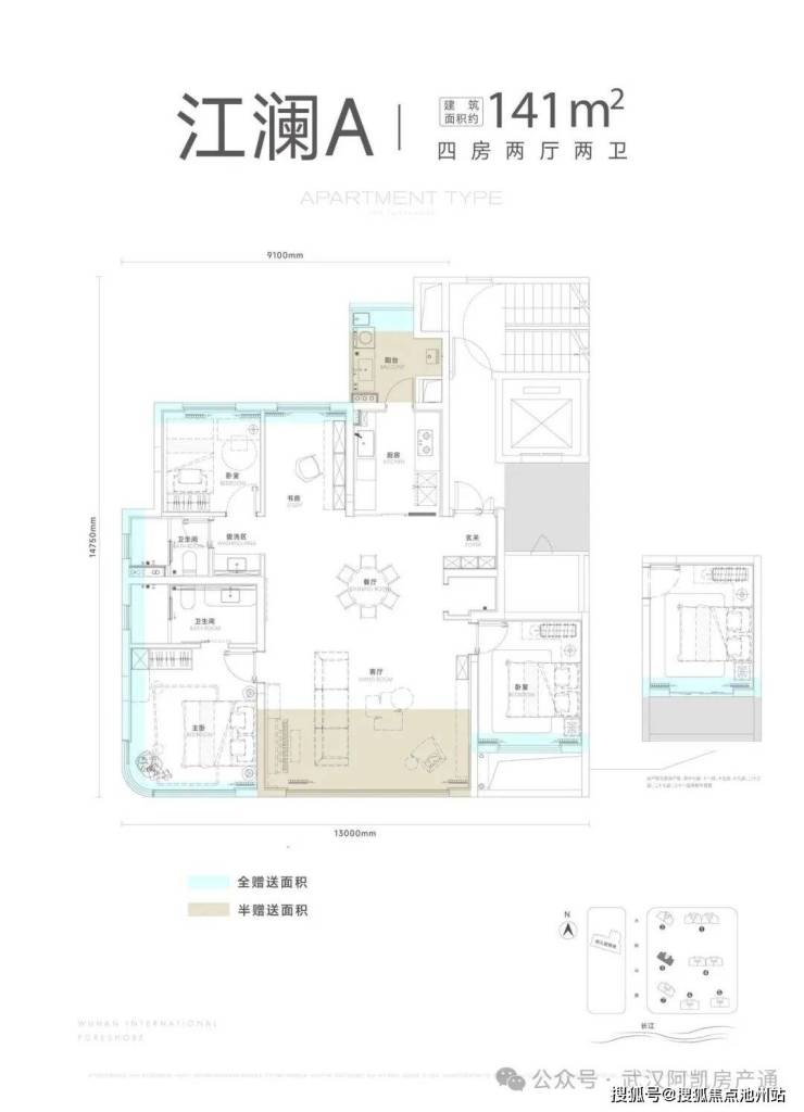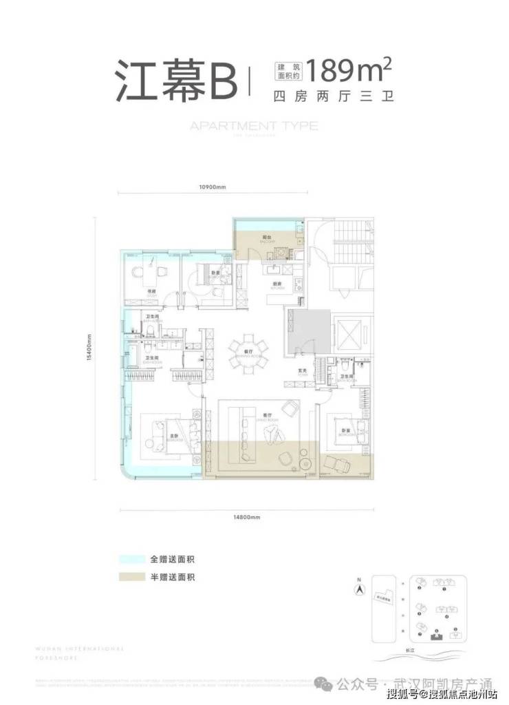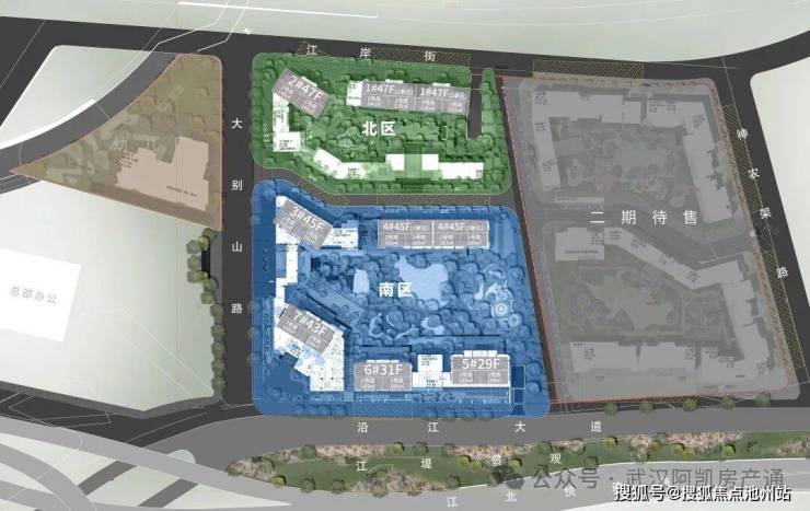 项目一期包含7栋住宅,北区1-2栋,南区3-7栋,其中5-6-7栋(主推169-189㎡)位于项目最南端,可以一线无遮挡看江。