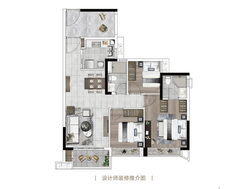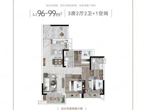 96-99㎡ 3+1 房:全卧室朝南,灵动空间可改书房,收纳空间充裕;