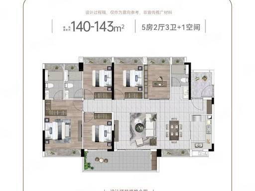 140-143㎡ 5+1 房:终极改善,全明格局,家族聚居一步到位。