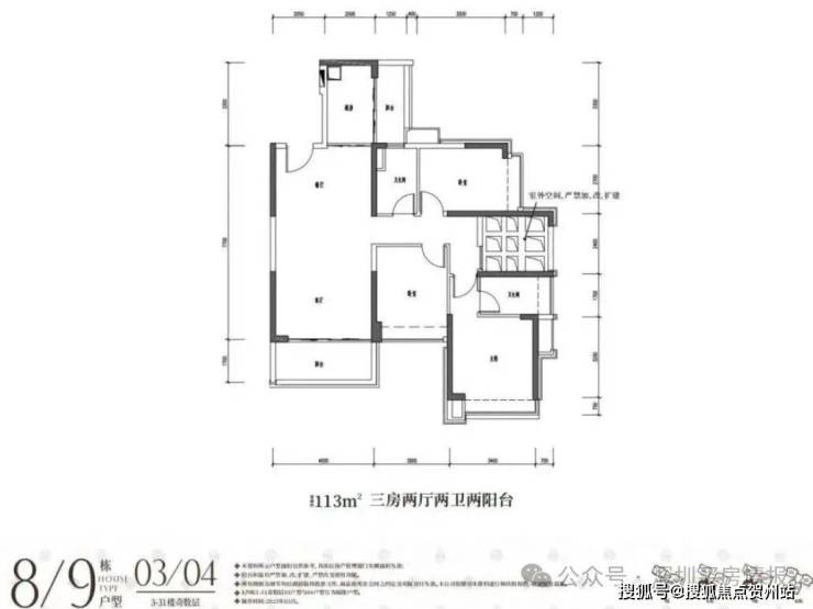 113平3房2卫(客厅开间4米)