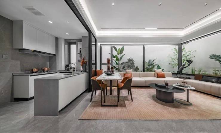 这样的设计,既增加了空间使用面积,又节约了家具空间,同时,还可以拥有优质的景观和采光效果,无界自然连通,拉满“豪宅”逼格。