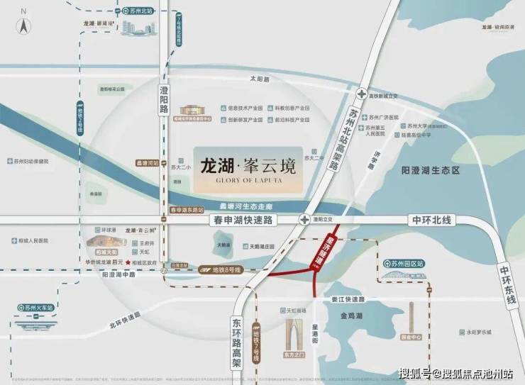 咫此近享双轨(地铁7-延长线在建/8号线)、双环(中环北线/苏州北高架路)一隧(阳澄湖星济隧道-在建)、等全维立体交通,4站苏州北,6站抵园区,约10min至龙湖·相城天街,约15min直通高铁站,约22min畅达园区。