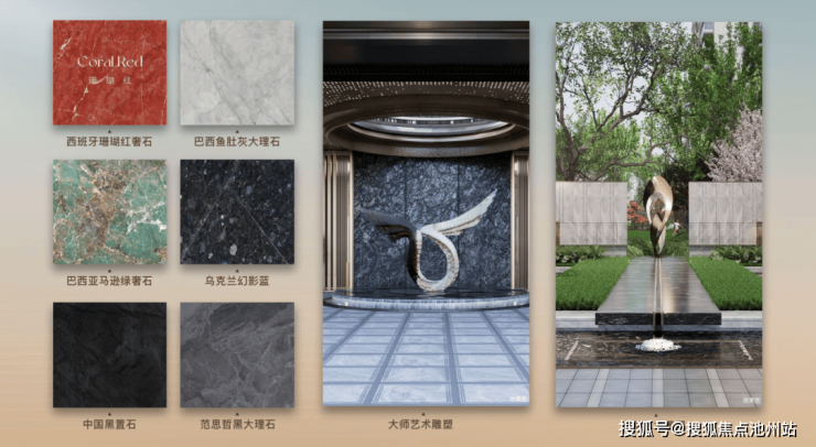约110M超大尺度城市界面,仪式水景拾级而上,定制级艺术雕塑,酒店礼遇仪式侯迎隐奢归家。