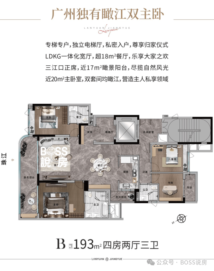 枕三江交汇的千年潮韵,踞白鹅潭 CBD 的时代风口,兰园江悦从未只是一处滨江居所,而是广州主城江景豪宅的藏品级答案。90 米亲江无界揽 400 米阔幕江景,低密纯大平层划定塔尖圈层,顶配双会所与现楼交付夯实硬核价值,天赋江景 + 城芯红利 + 精工匠造,三重王牌叠加,让每一个卖点都成为无可替代的人居亮点。