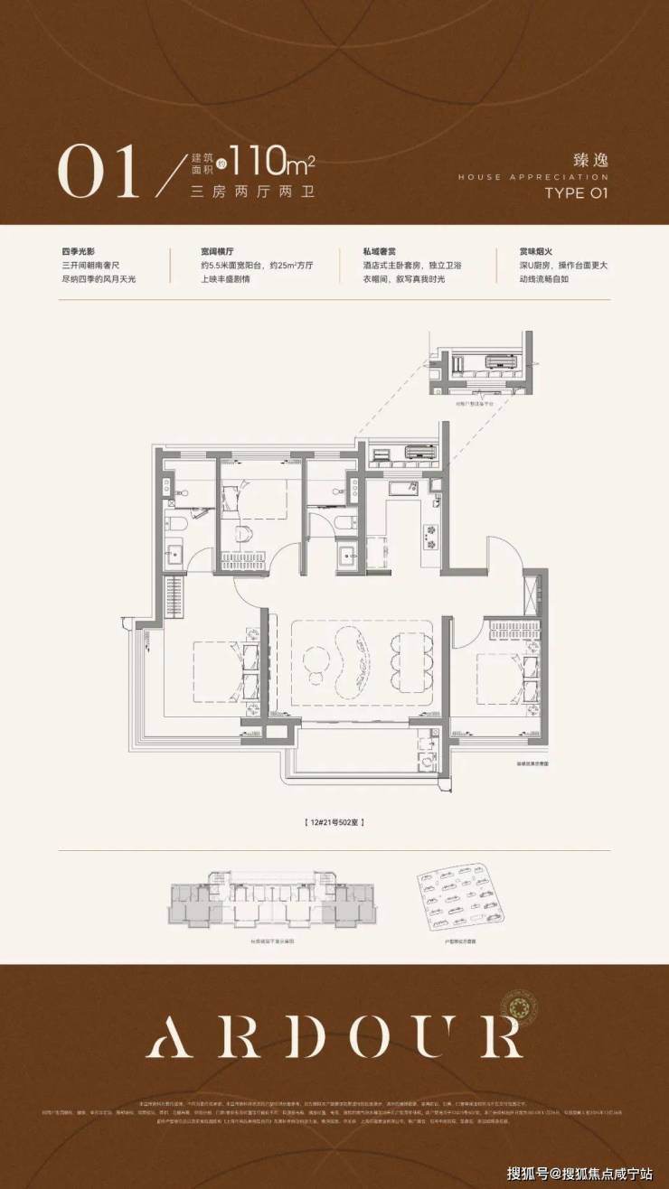 招商中旅·观境售楼处电话:400-1010-064 的主力户型建面约110-144㎡,其中约144㎡的终极改善产品套数占比很高。