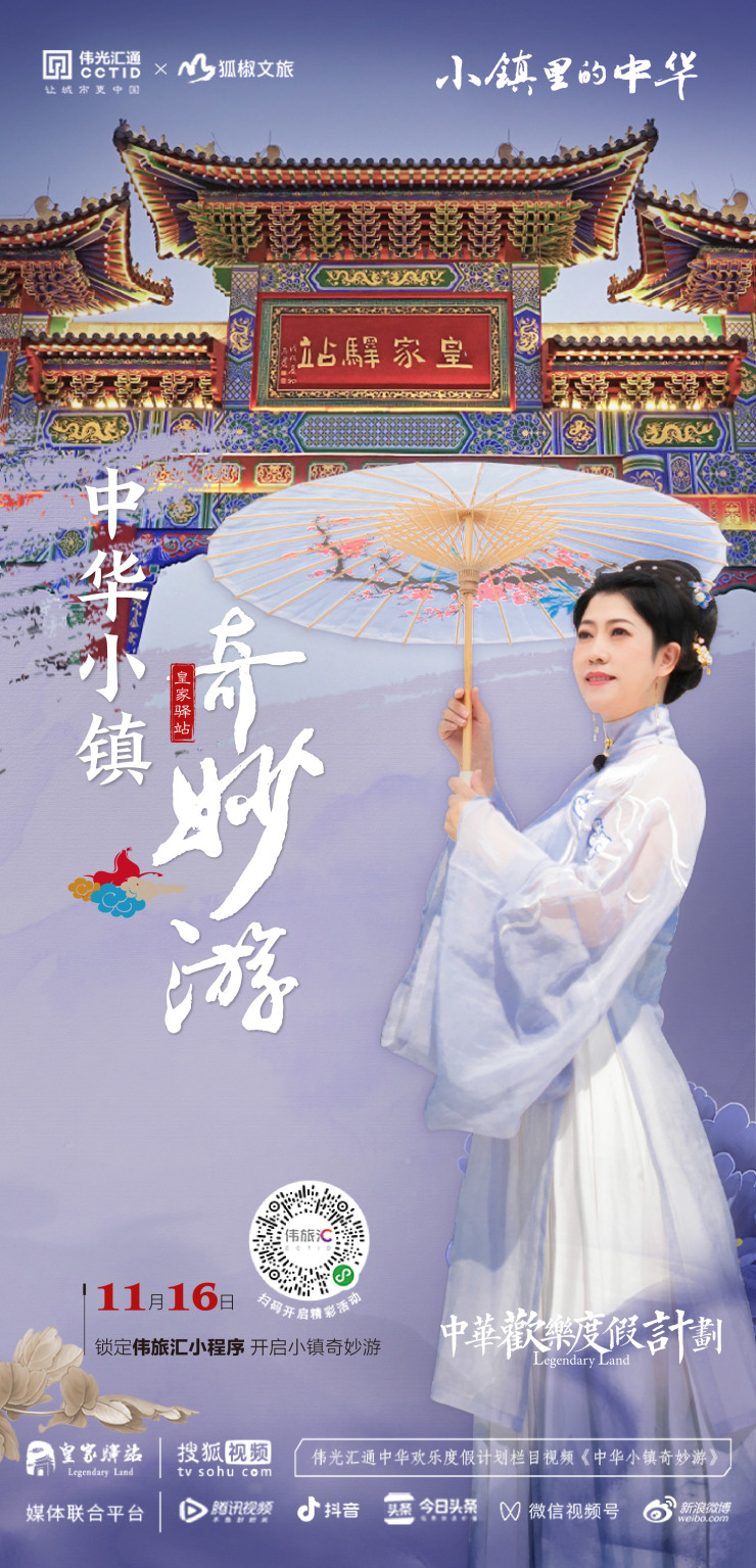 一朝入画卷,一驿回千年,在皇家驿站开启一场奇妙之旅,寻最对味儿的中华韵。由狐椒文旅、伟光汇通联合出品的小镇微旅行系列——“遇见琪悦”之“中华小镇奇妙游”,首期视频将于2021年11月16日正式上线搜狐视频,狐椒文旅、伟旅汇等平台也将同步上线。