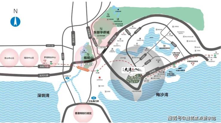城市快速路,地铁八号线,15分钟罗湖中心,25分钟福田CBD,60分钟畅达大前海自贸区,从东部的海开往西部的湾。沙头角、莲塘双口岸一站式深港通行