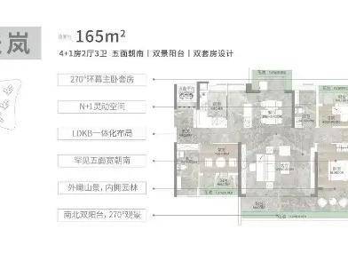 165㎡ 4+1 房:终极改善,专梯入户,双主套设计,三面望山,近 9 米景观阳台。
