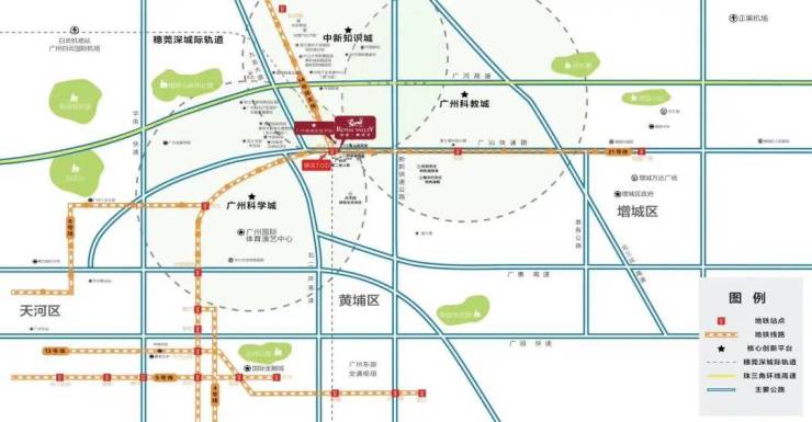 • 地铁21号线中新站上盖,快线3站到天河